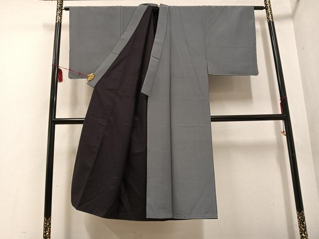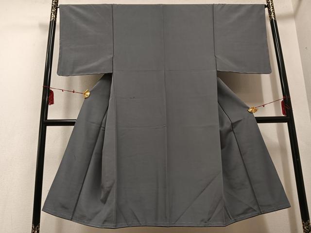 Heiwaya Kimono: Men's Tsumugi Kimono, Plain Color, Kikyo Gray, Pure Silk, Excellent Condition, Unused, AABD7050ph