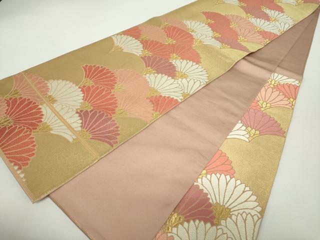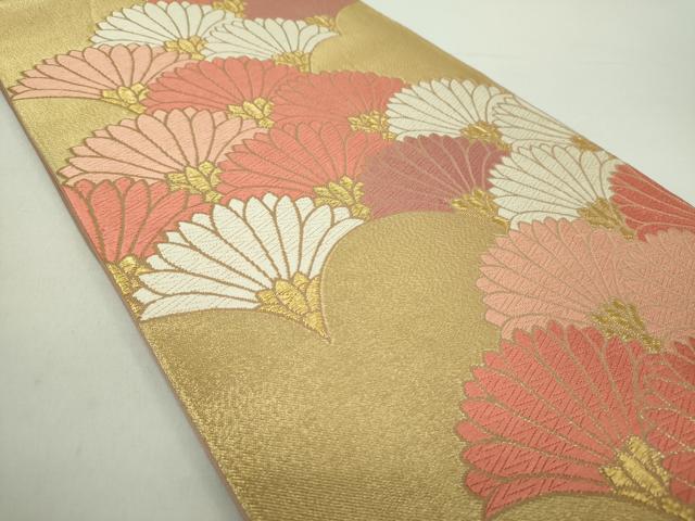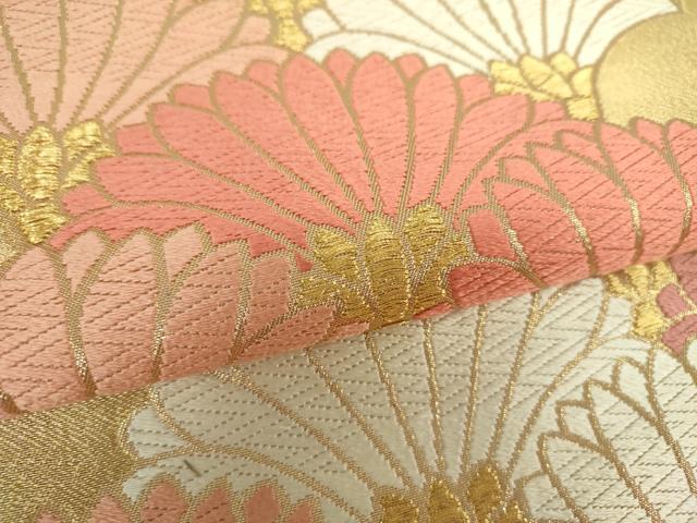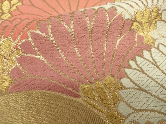 Heiwaya Kimono: Nishijin Kawashima Textiles, Six-Pass Pattern, Authentic Fukuro Obi, Karaori, Chrysanthemum and Wave Design, Gold Thread, Pure Silk, Excellent Quality, DABA1666ps