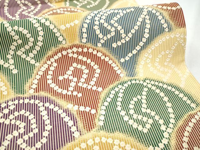 Heiwaya Kimono: Nishijin, Yamada Orimono's Six-Piece Pattern Obi, Karaori, Geometric and Floral Design, Gold Thread, Certificate of Authenticity, Pure Silk, Excellent Condition, Unused, CABB9487hy
