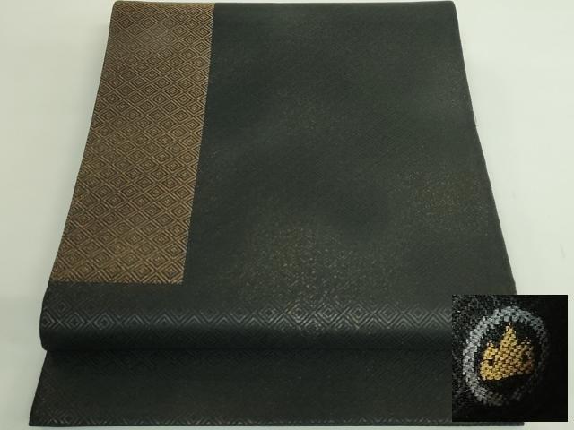Heiwaya Kimono: Premium Maru Factory Maruyama Tadashi Six-Piece Pattern Obi with Neriko Diamond Pattern, Black, Excellent Condition, DZAB2378kh6