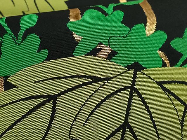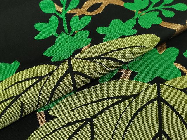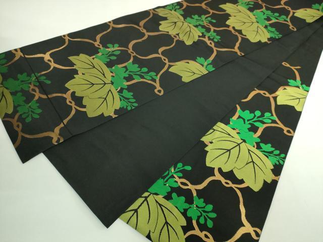 Heiwaya Kimono: Premium Masuya Takao Six-Pass Pattern Authentic Fukuro Obi (Sash), Paulownia Wood, Black with Gold Thread, Excellent Condition, DZAB2350kh6