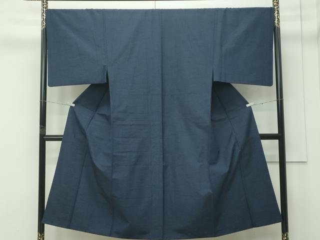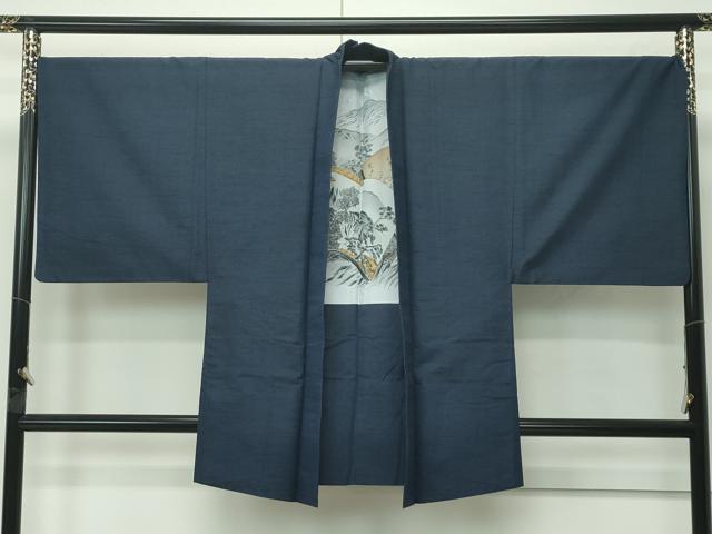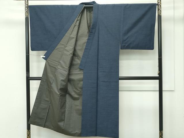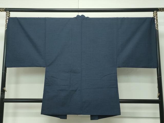 Heiwaya Kimono: Premium Men's Tsumugi Ensemble, Solid Color, Indigo Blue, Excellent Condition, CZAA4510s6