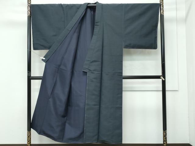 Heiwaya Kimono: Premium Men's Tsumugi Kimono, Solid Color, Dark Blue, Excellent Condition, Unused, CZAA4853s6