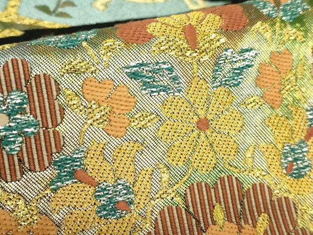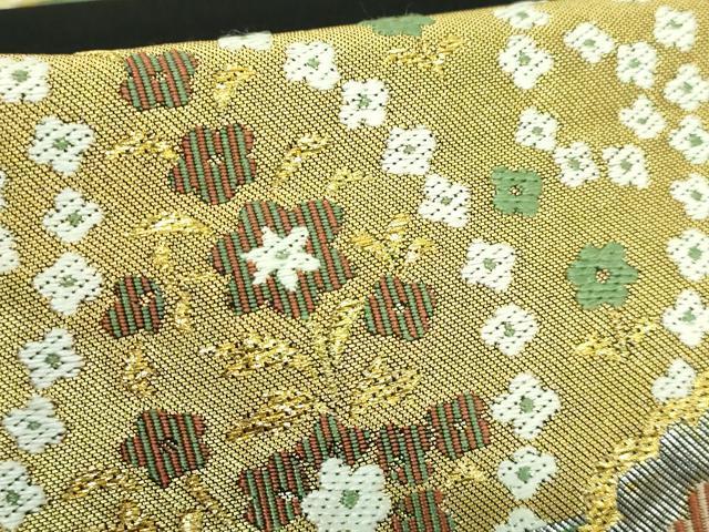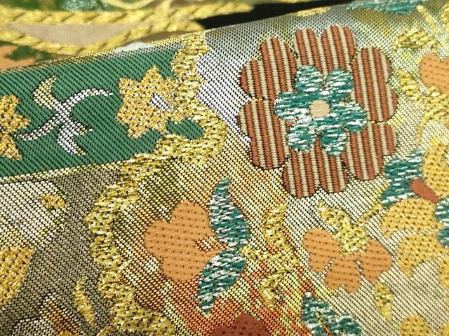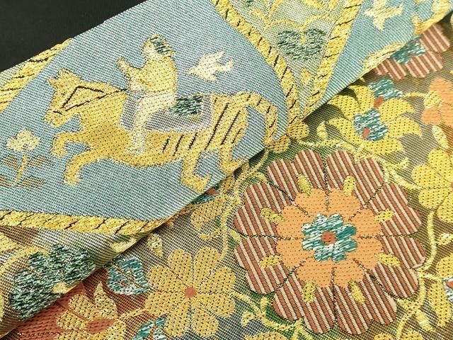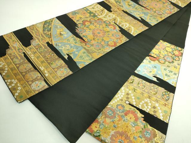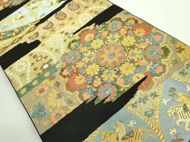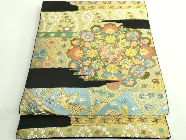 Heiwaya Kimono: Premium Nishijin Kawashima Orimono Six-Pass Pattern Authentic Fukuro Obi with Shosoin-era Flower and Figure Design, Black Background, Gold and Silver Thread, Excellent Condition, DZAB2006kh6