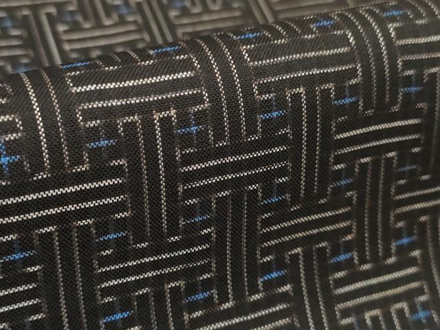 黒のザルの格子柄に十文字を交差させた模様を中心としています。