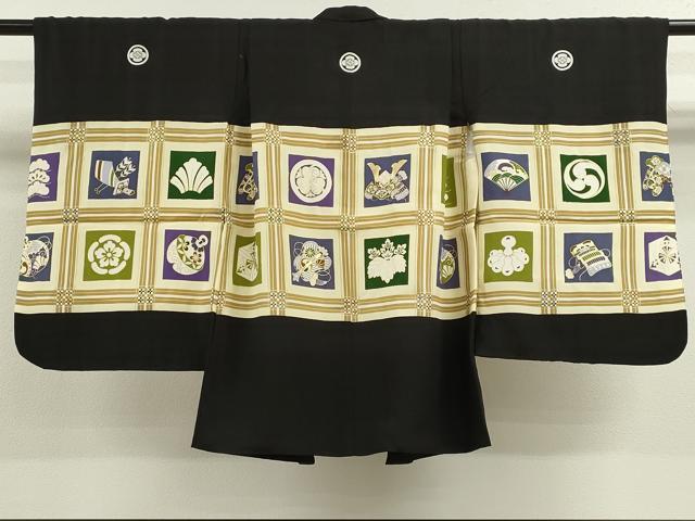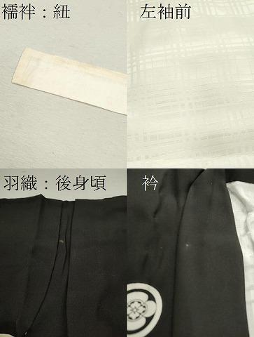 羽織【表地:正絹・胴裏:化繊・五つ紋】の状態は接写画像のように後身頃・衿に薄い汚れがございますが