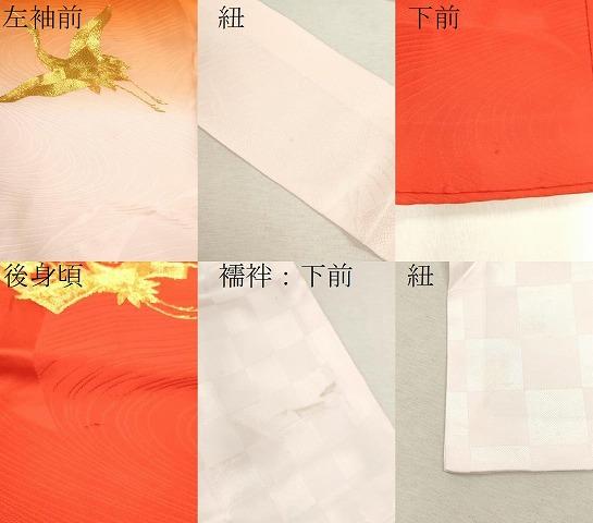 着物【表地:正絹・胴裏:化繊】の状態は接写画像のように左袖前・下前・後身頃に薄い汚れ、紐に薄い点シミがございますが