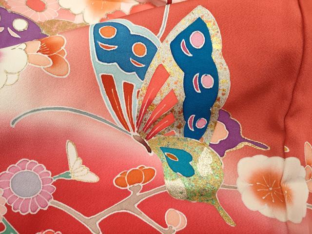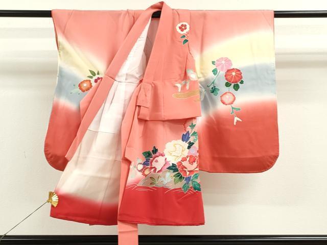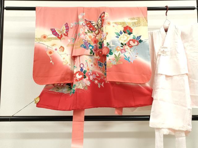 Heiwaya Kimono Set for Shichi-Go-San Ceremony, 3-Year-Old Girl, Celebration Kimono Set with Three-Piece Set and Long Under-Kimono, Dancing Butterfly and Floral Design, Gradient Dye, Gold and Silver Accents, Excellent Quality, CAAV9384ze