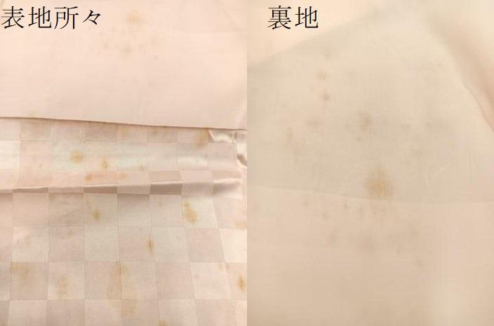 長襦袢【化繊】の状態は接写画像のように表地所々・裏地・胴裏に薄い汚れがございますが