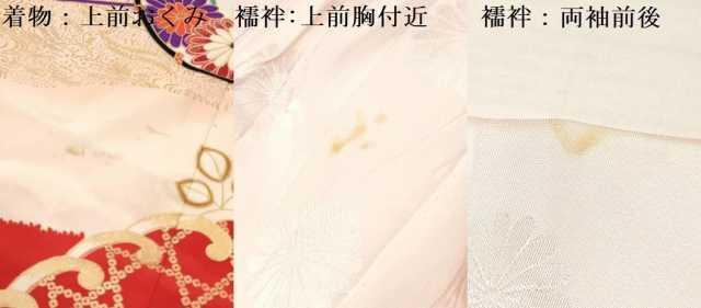 着物【正絹】の状態は接写画像のように上前おくみに薄い汚れがございますが