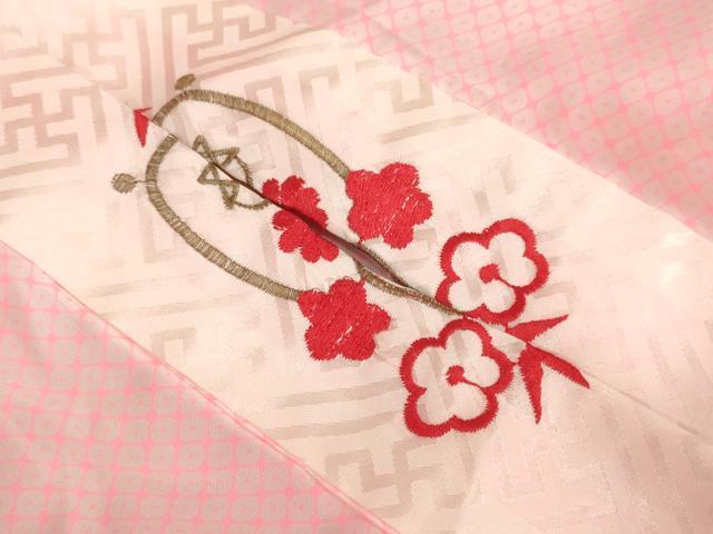 長襦袢【化繊・半衿刺繍】の状態は接写画像のように、衿裏にペン書きがございますが、
