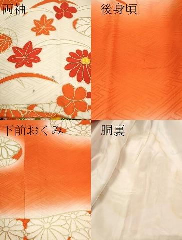 着物【正絹】の状態は接写画像のように両袖・後身頃・下前おくみ・胴裏に薄い汚れがございますが