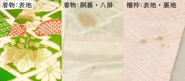 状態は接写画像のように表地所々・胴裏・八掛に薄い汚れがございます。