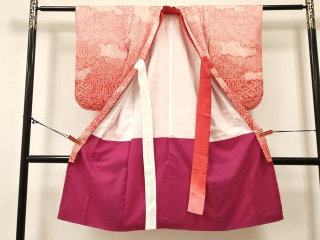 Heiwaya Kimono Shichi-Go-San (7-5-3) Ceremony Kimono for Girls, Age 7, Four-Panel Style, Fully Shibori Dyed, Cloud and Flower Pattern, Gradation Dye, Exquisite Item, DABC5202ma