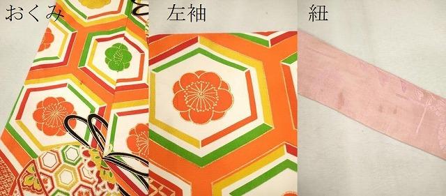 着物【表地:正絹・胴裏:化繊】の状態は接写画像のようにおくみ・左袖・紐に薄い汚れがございますが