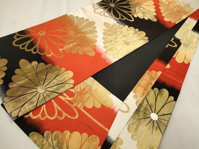 全通柄袋帯【正絹】の状態は接写画像のように表地所々に薄い汚れがございます。