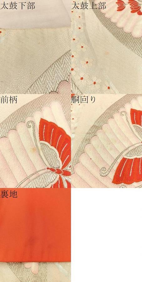 太鼓下部・太鼓上部・前柄・胴回り・裏地に薄い汚れがございますが