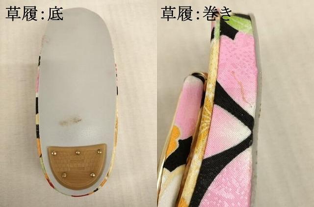 草履の状態は接写画像のように底・巻きに汚れがございますが