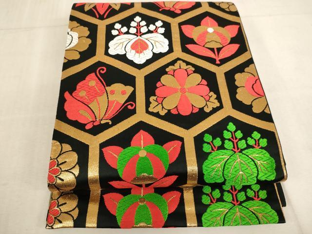 袋帯【化繊】の状態は接写画像のように垂れ先上部に薄い汚れがございますが