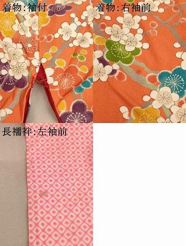 着物【正絹】の状態は接写画像のように袖付に糸解け、右袖前に汚れがございますが