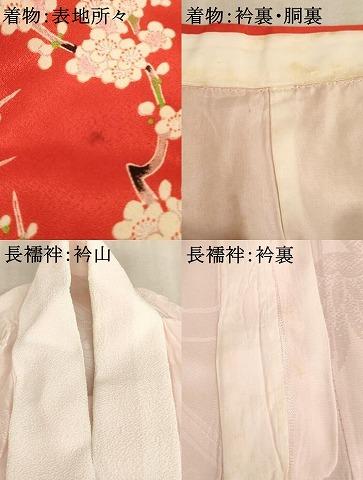 着物【正絹】の状態は接写画像のように表地所々・衿裏・胴裏に汚れがございます。