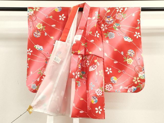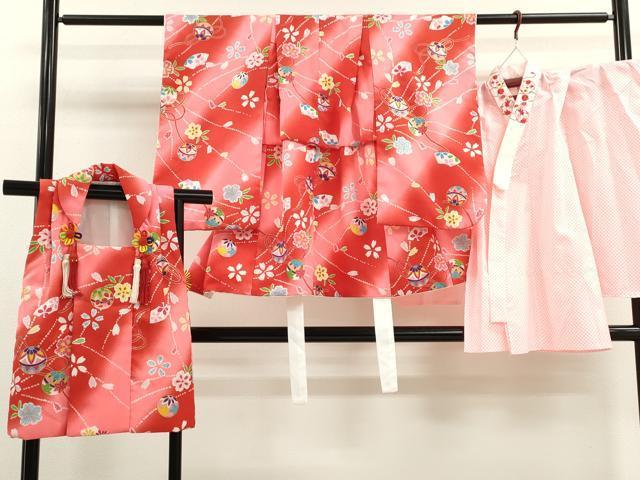 Heiwaya Kimono Shichi-Go-San (7-5-3) Set for Girls, Age 3, Celebration Kimono, Three-Piece Set with Nagajuban and Hifu, Ball Dance Flower Pattern, Gradient Dye, Gold Accents, Washable, CAAT6178ze
