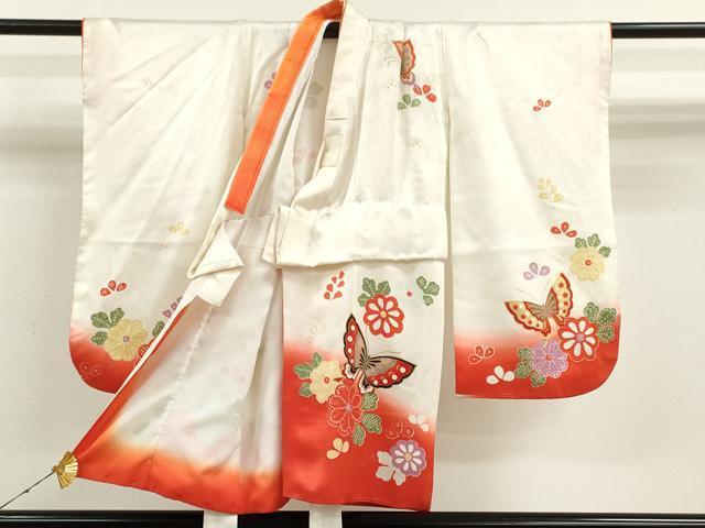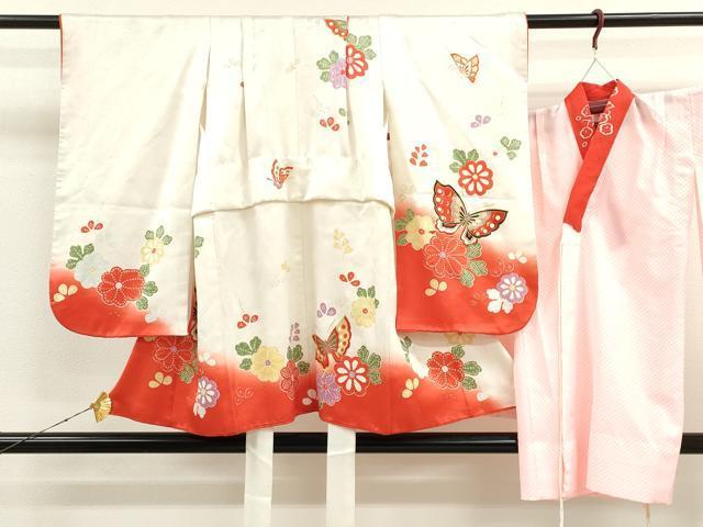 Heiwaya Kimono Shichi-Go-San (7-5-3) Set for Girls, Age 3, Celebration Kimono, Three-Piece Kimono Set with Nagajuban (Undergarment), Dancing Butterfly and Flower Design, Gold Accents, Washable, CAAT6189ze