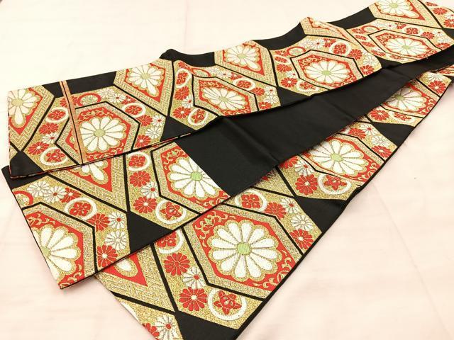 袋帯【正絹】の状態は接写画像のように裏地に薄い汚れがございますが