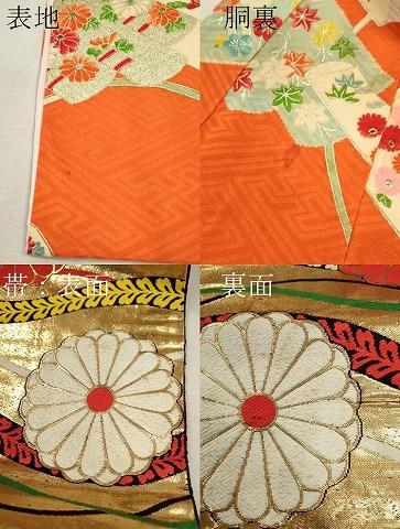 丸帯【正絹】の状態は接写画像のように表地所々・裏地に薄い汚れがございます。