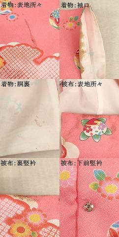 着物【化繊】の状態は接写画像のように表地・袖口・胴裏に汚れがございますが