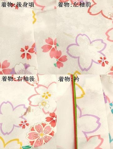 着物【化繊】の状態は接写画像のように後身頃・左袖前・衿に薄い汚れ、右袖後に汚れがございますが