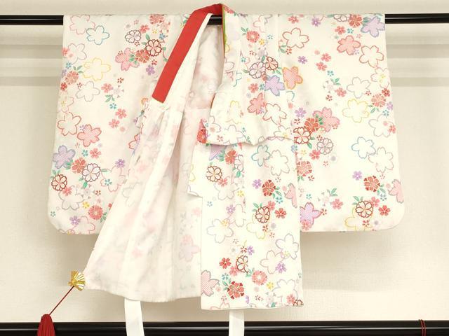Heiwaya Kimono Shichi-Go-San, Girl's 3-Year-Old, Celebration Kimono, Three-Piece Kimono Set with Nagajuban (Undergarment), Dancing Cherry Blossom Design, Gold Accents, Washable, AAAU5260ja