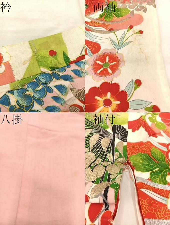 衿・両袖・八掛に薄い汚れ、袖付に糸とけがございます。