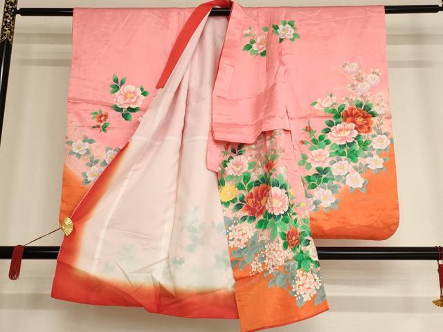 Heiwaya Kimono Shichi-Go-San Set for Girls, Age 3, Celebration Kimono, Three-Piece Kimono Set with Nagajuban Undershirt, Floral Pattern, Gradient Dye, Gold Accents, Synthetic Fiber, AAAW7091ja