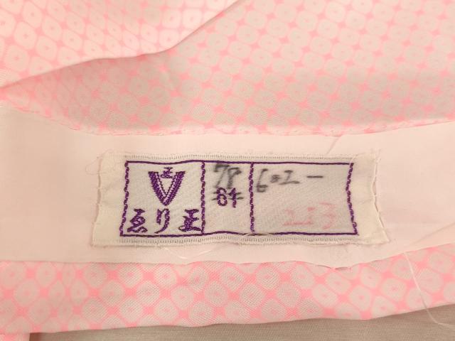 着物【化繊】の状態は接写画像のように衿に汚れ、衿裏にシールがございますが