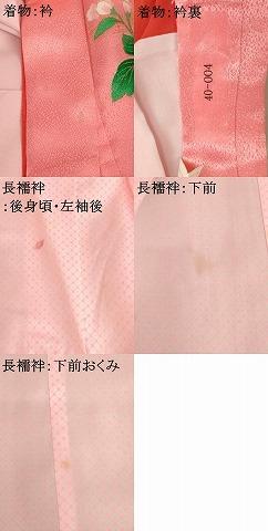 長襦袢【化繊】の状態は接写画像のように後身頃・左袖後・下前・下前おくみに汚れがございますが