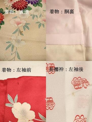 長襦袢【化繊・袷】の状態は接写画像のように左袖後に薄い汚れがございますが