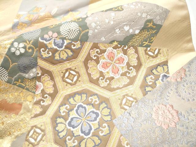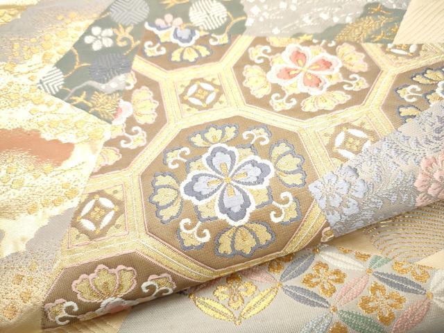Heiwaya Kimono: Six-Piece Pattern Obi (Sash), Karaori Weave, Layered Flower Pattern on Colored Paper, Gold and Silver Thread, Pure Silk, Excellent Quality, CABB5987hy, Available at Mitsukoshi