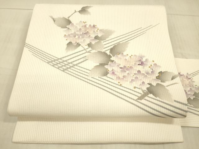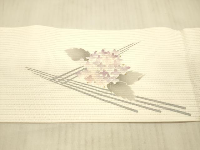 Heiwaya Kimono * Summer 9-inch Nagoya Obi, Hydrangea, Gold, Pure Silk, Excellent Quality, DAAX89, 45cm