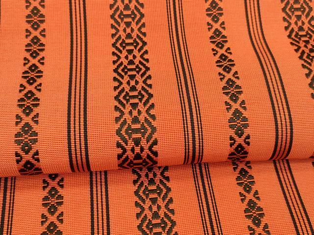 仏具のひとつである独鈷、華皿を基にした幾何学模様が織られています。