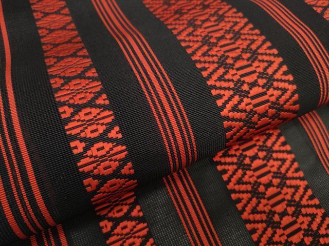 仏具のひとつである独鈷、華皿を基にした幾何学模様が織られています。