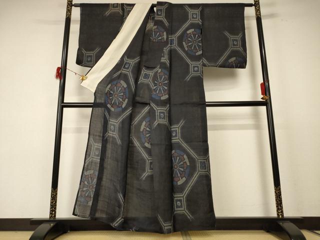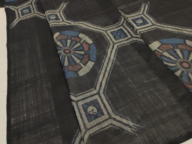 上品で美しい花菱重ね文様が織り出された黒藍地
