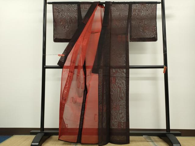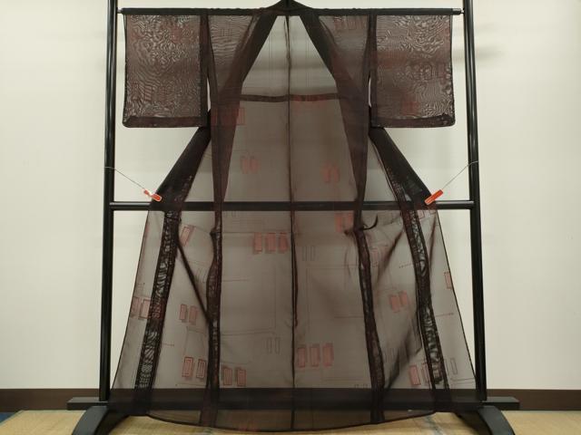 Heiwaya Kimono * Summer Komon (small pattern) gauze geometric pattern black silk exquisite item unused CABB2266ze