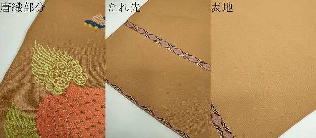 状態は接写画像のように唐織部分に若干の糸よれ、たれ先に薄い汚れ、表地所々に若干の薄い汚れがございます。