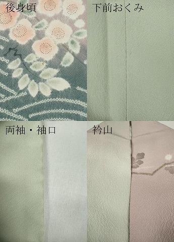 状態は接写画像のように後身頃・下前おくみ・衿山・両袖・袖口に薄い汚れがございますが