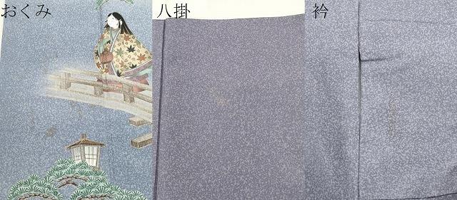 状態は接写画像のようにおくみに汚れ、八掛・衿に薄い汚れがございますが