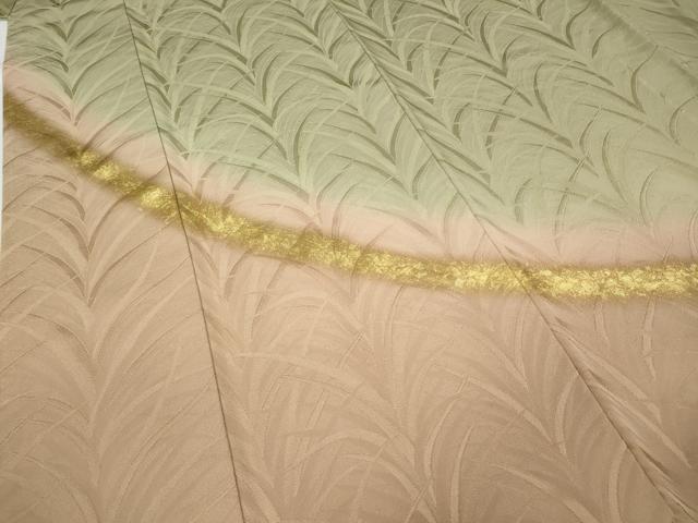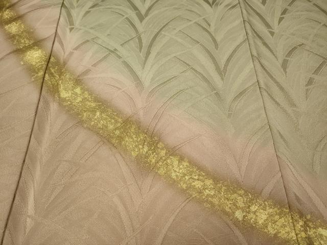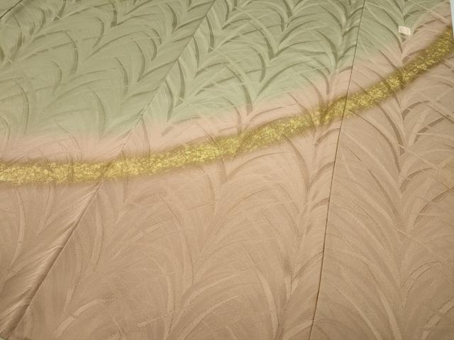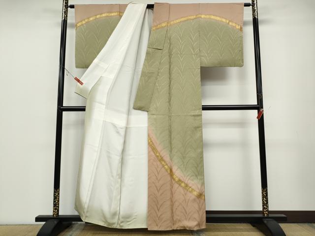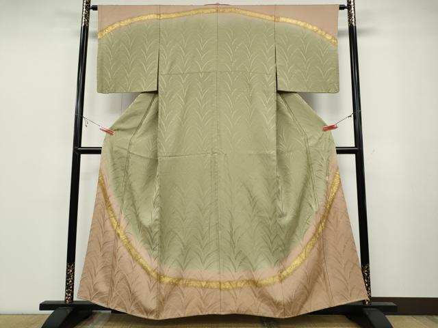 Heiwaya Kimono: Visiting Kimono by Kitade Yosaburo, Artist Presented to the Imperial Family. Plant-patterned, ombré dyed, gold accents. Pure silk. Excellent quality. CABB6278ut
