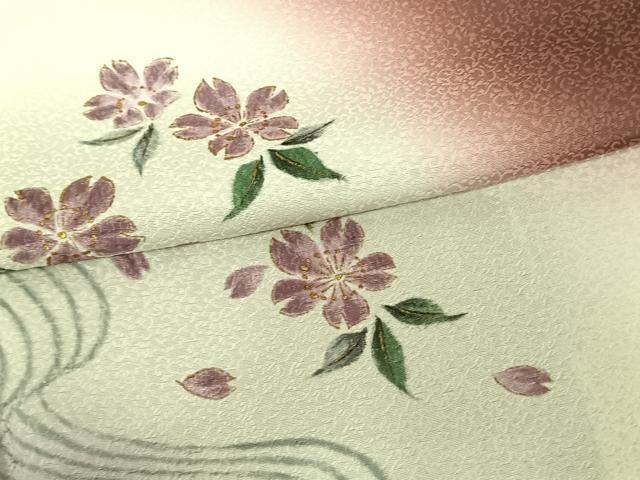 Heiwaya Kimono: Visiting Kimono, Hand-painted, Dancing Flower Pattern, Gradient Dye, Gold Accents, Sagami Brand, Pure Silk, Excellent Condition, Unused, AABF0411fy
