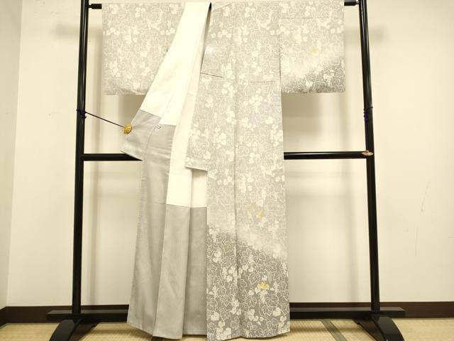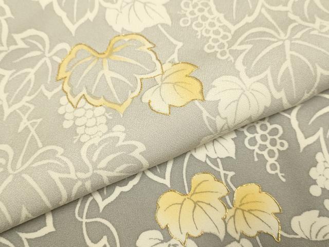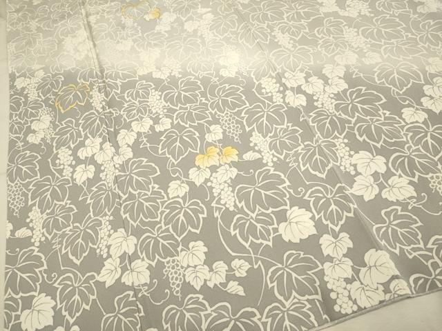 Heiwaya Kimono: Visiting Kimono, Koma Embroidery, Grape and Ivy Leaf Design, Gradient Dyed, Pure Silk, Excellent Item, DABA8885du