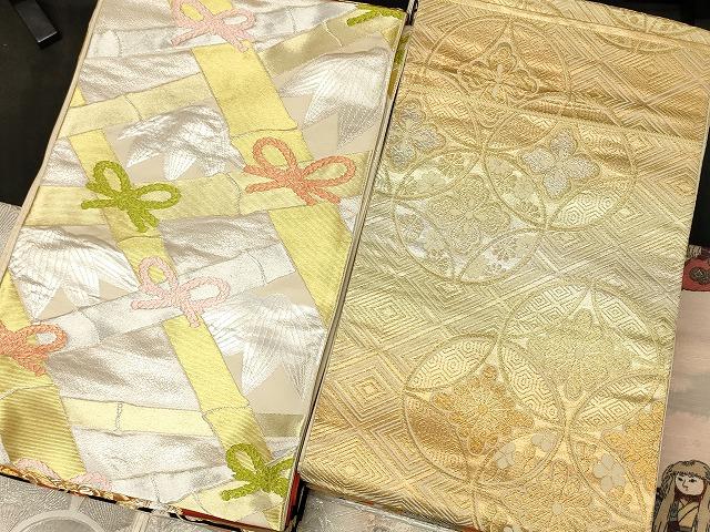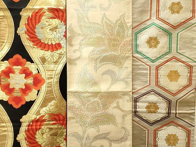 Heiwaya Main Shop ■ Nishijin Fukuro Obi (Sashes) - 100 pieces in total. Cranes, figures, landscapes, chintz, floral patterns, cloisonné, gold and silver thread, etc. Many in wearable condition, some unused. All pure silk. se3434